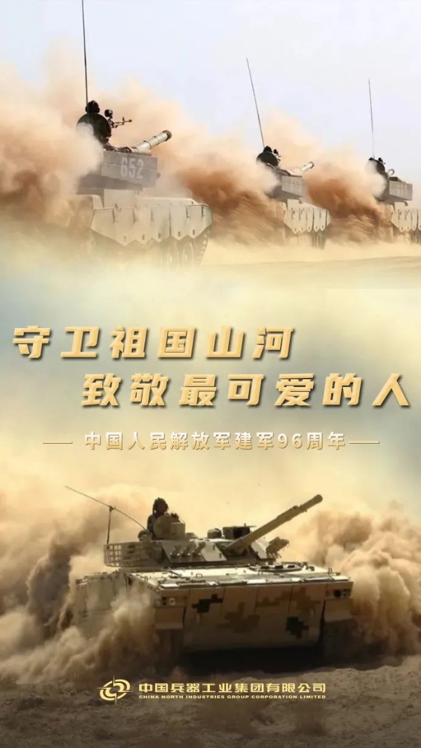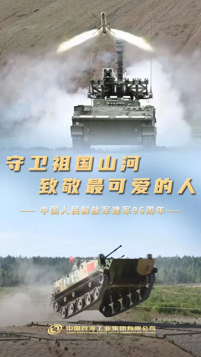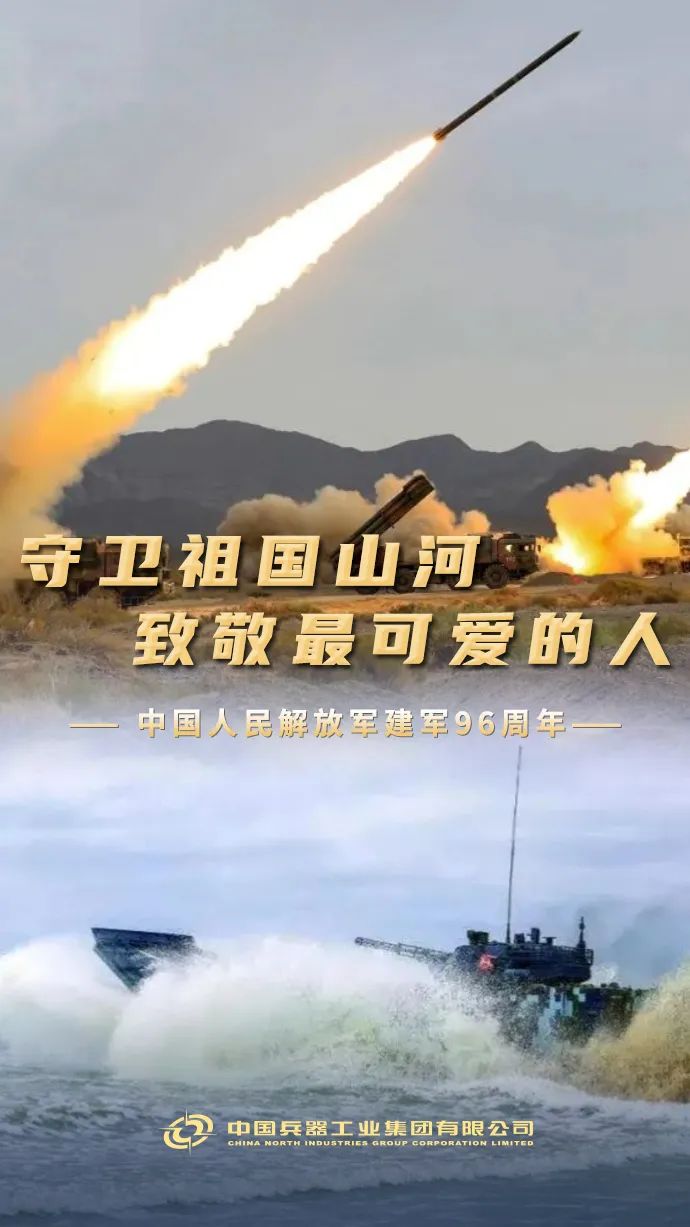 今天,“八一”! 中國人民解放軍建軍96周年 你為國保平安 我為你鑄利劍 使命催征,勇毅前行 兵器工業(yè)集團 將始終堅定履行好強軍首責 為把人民軍隊建設(shè)成為 世界一流軍隊 捍衛(wèi)國家主權(quán)、安全、發(fā)展利益 提供堅實的 技術(shù)裝備保障支撐 人民軍隊,生日快樂! |
