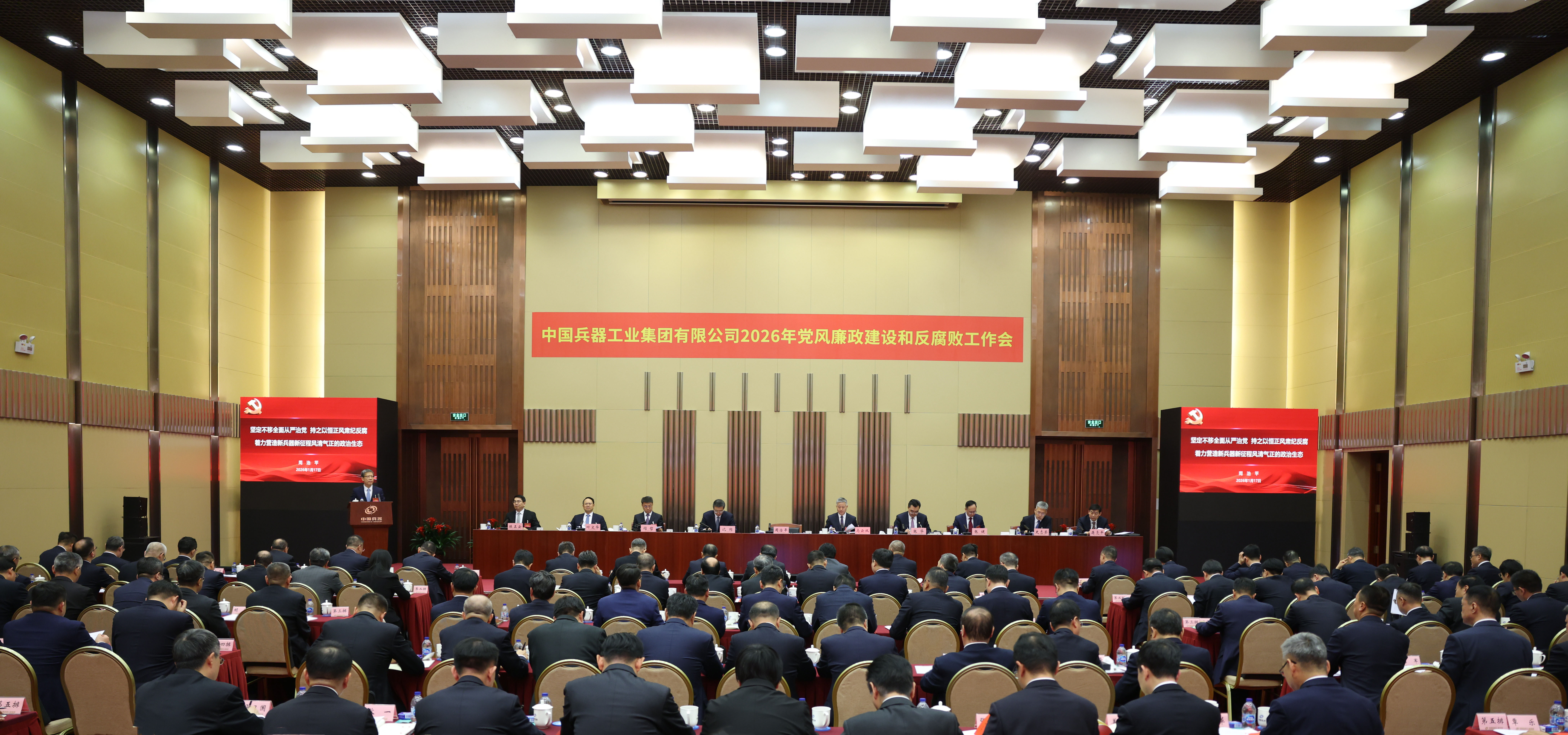 1月17日,中國兵器工業(yè)集團有限公司召開2026年黨風廉政建設和反腐敗工作會議,會議以習近平新時代中國特色社會主義思想為指導,深入學習貫徹黨的二十大和二十屆四中全會精神,全面貫徹落實二十屆中央紀委五次全會精神,總結工作、部署任務,以更高標準、更實舉措推進全面從嚴治黨,為實現集團公司“十五五”時期目標任務提供堅強保障。集團公司黨組書記、董事長周治平作了《堅定不移全面從嚴治黨,持之以恒正風肅紀反腐,著力營造新兵器新征程風清氣正的政治生態(tài)》的講話,并與集團公司各部門、各子集團和直管單位簽訂《黨風廉政責任書》。駐集團公司紀檢監(jiān)察組組長、集團公司黨組成員陳正云傳達了二十屆中央紀委五次全會精神,通報了駐集團公司紀檢監(jiān)察組2025年重點工作和查處典型案件暴露出來的問題并提出意見要求。集團公司總經理、黨組副書記馬云雙主持會議。
